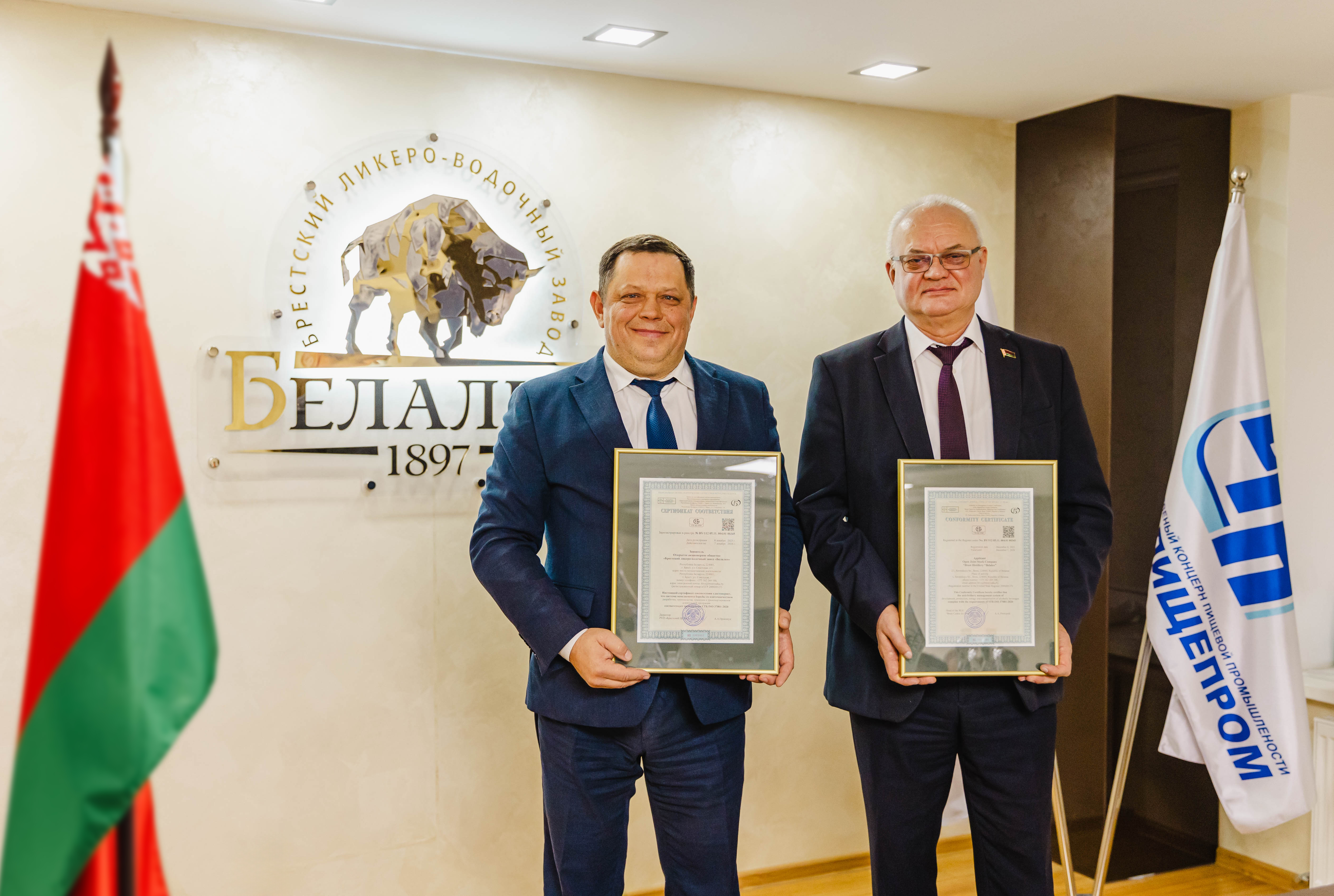 09 декабря в ОАО «Брестский ЛВЗ «Белалко» состоялось общее собрание коллектива, на котором в торжественной обстановке руководитель РУП «Брестский ЦСМС» Прокопук Андрей Андреевич вручил генеральному директору общества Романовскому Александру Владимировичу сертификат соответствия требованиям СТБ ISO 37001-2020 «Система менеджмента борьбы со взяточничеством. Требование и руководство по применению» - первый сертификат на систему менеджмента борьбы со взяточничеством организации I региона.